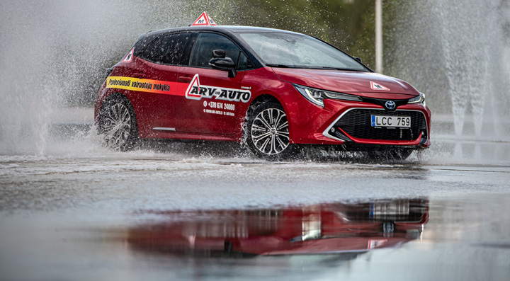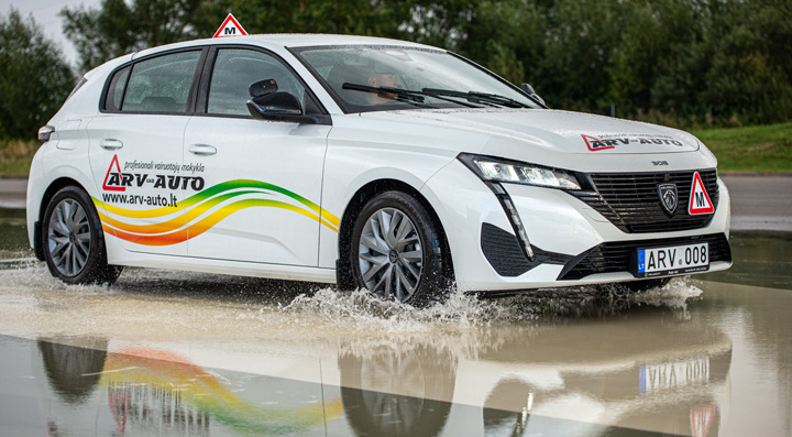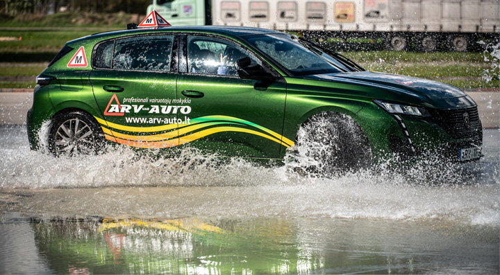 Kursų metu taip pat atliekamas ir vairavimo mokymas ARV-Auto autodromo slidžių dangų trasose – tai patirtis, kurios nepasiūlys nei viena vairavimo mokykla Kaune.