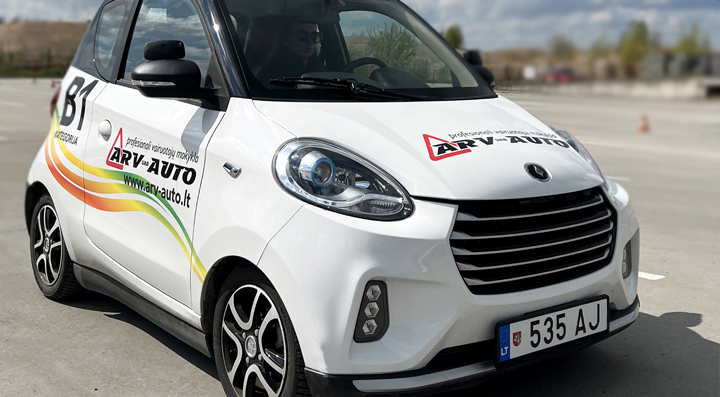 Praktinio vairavimo įgūdžių mokysites pilnai elektrinėmis Zhidou markės transporto priemonėmis su aukštos kvalifikacijos vairavimo instruktoriumi.
